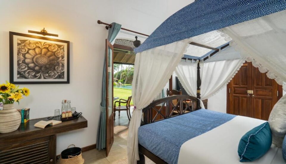 With carefully crafted, post-colonial architecture, the Deluxe Double Sea View room is a luxurious and charming accommodation option. Located on the upper level of Sundara, overlooking the pool and the beach, this room is adorned with exquisite, antique furniture, including a four-poster bed, armchairs and a writing desk. This room offers stunning views of the ocean and is ideal for travellers who appreciate the finer things in life.