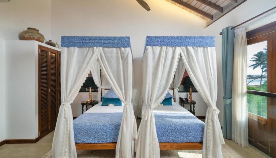 Travelling together with friends and family? Check out our Deluxe Twin Sea View room. Located on the upper level of Sundara, this room is spacious and tastefully decorated. There's plenty of room for you and your friends or family members to kick back and relax while enjoying some spectacular views of the ocean, within a slice of Sri Lankan design.